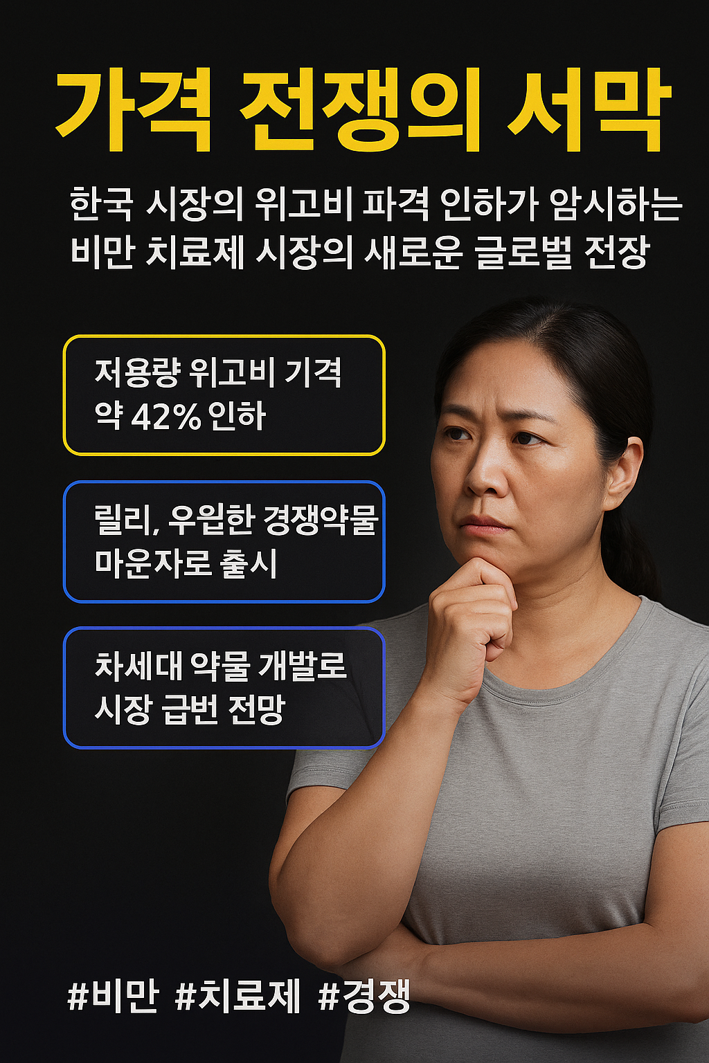 2025년 8월, 블록버스터 비만 치료제 위고비(Wegovy)의 한국 시장 가격 조정 발표는 표면적으로는 평범해 보였지만, 그 이면에는 거대한 지각 변동이 숨어 있었습니다. 이것은 단순한 계절적 할인이 아니었습니다. 한국 땅에서 새로운 글로벌 전쟁의 시작을 알리는 첫 총성이었습니다.