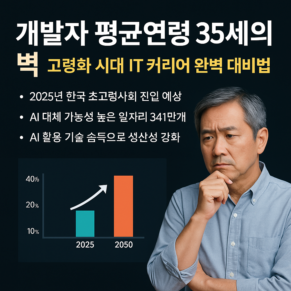 인구 고령화와 IT 업계의 청년 선호 문화가 충돌하는 시대, 개발자들은 커리어 지속성에 대한 불안을 느끼고 있습니다. 전 세계적으로 인구는 고령화되고 있지만, IT 산업은 여전히 젊은 인재를 선호하는 문화가 강합니다. 특히 한국은 2025년 초고령사회에 진입할 예정이며, IT 업계의 '35세 벽'은 현실로 다가오고 있습니다. 이 글에서는 고령화 시대의 IT 인력 시장 변화와 AI가 가져올 영향, 그리고 개발자들이 지속 가능한 커리어를 위해 준비해야 할 전략을 살펴보겠습니다.