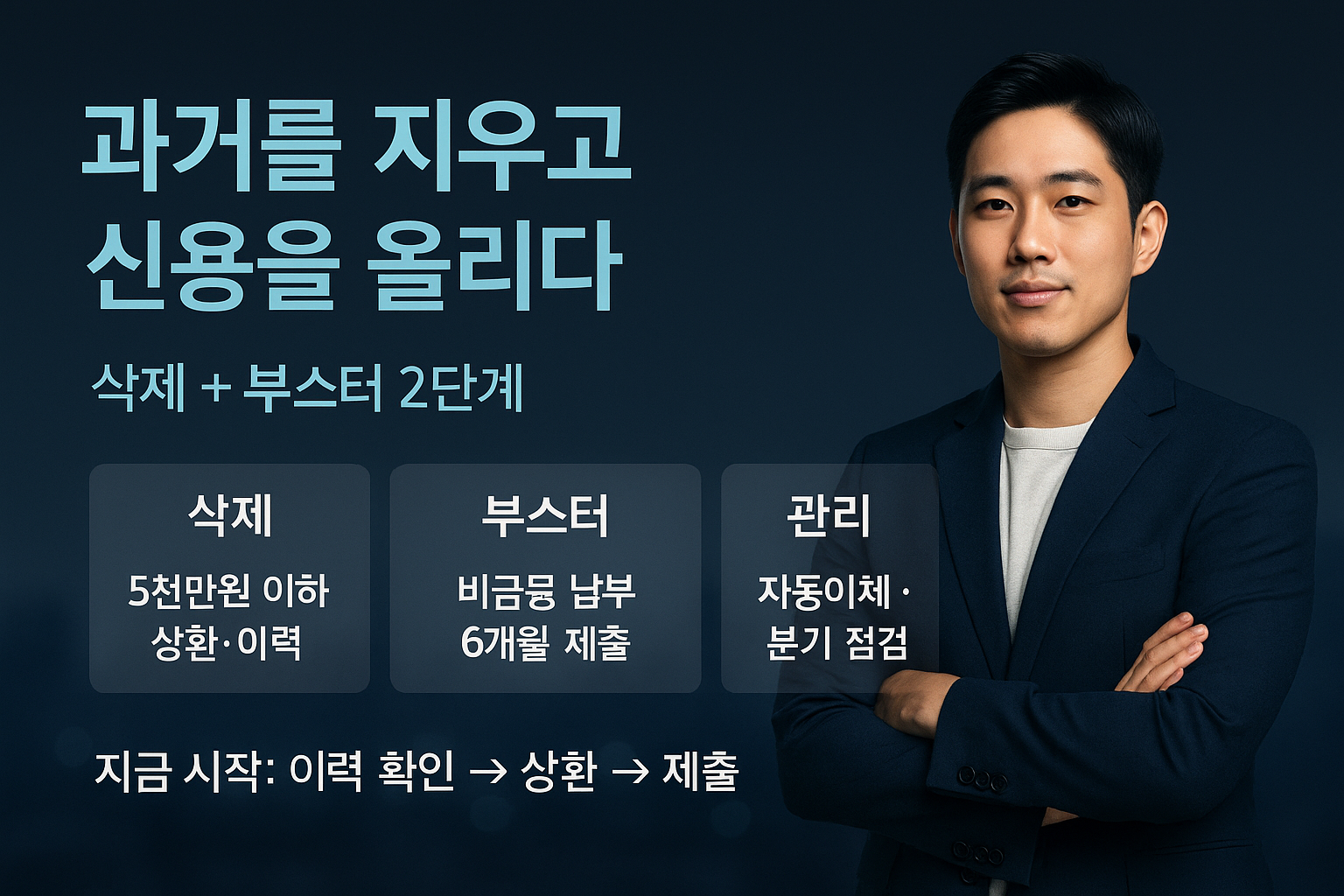 이후 철수 씨는 회복된 신용을 가속화하기 위해 듀얼 액션 전략을 실행했습니다. 그는 지난 9개월간 단 한 번도 밀리지 않고 납부했던 휴대폰 통신료와 건강보험료 납부 내역 서류를 준비했습니다. 이를 신용평가사에 제출하자, 과거의 부정적인 이력은 삭제되었고 현재의 안정적인 납부 기록이 가산점으로 작용하면서 신용점수가 단기간 내에 가파르게 상승하기 시작했습니다. 삭제 효과와 부스터 효과가 결합되어, 철수 씨는 연체 직전 수준을 훨씬 뛰어넘는 신용 등급을 180일 만에 회복할 수 있었습니다. 이 사례는 연체 이력 삭제 정책의 기회와 비금융 정보를 결합하는 것이 신용 회복 시간을 획기적으로 단축하는 가장 확실한 방법임을 보여줍니다.