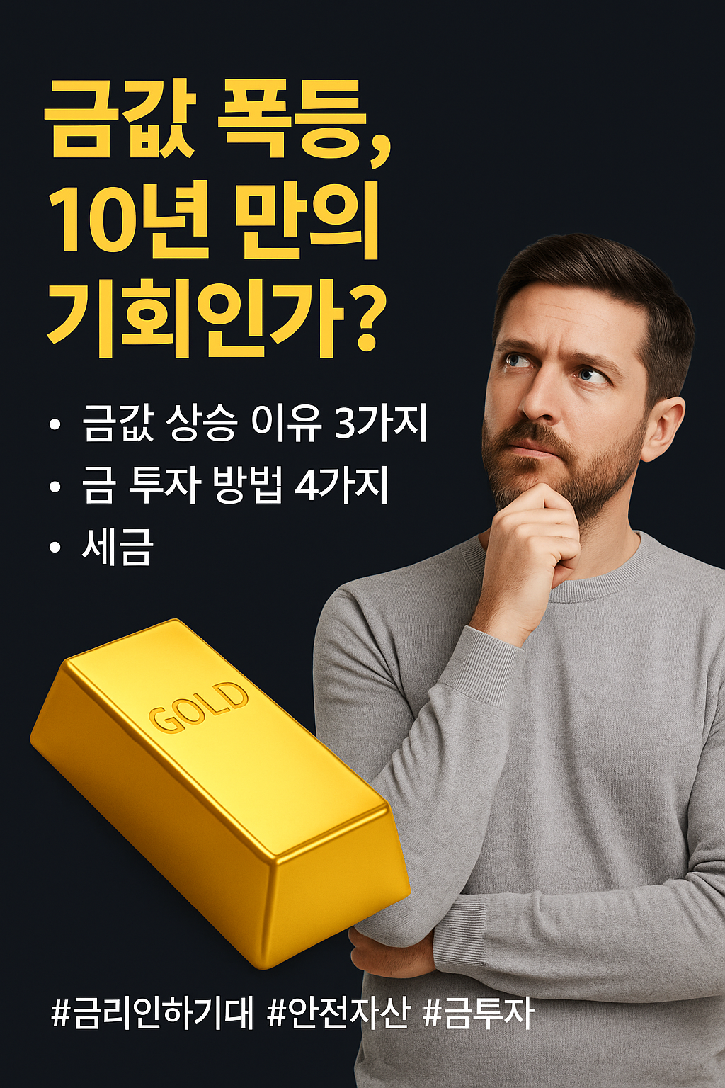 최근 금값이 연일 사상 최고가를 경신하며 투자 열기가 뜨겁습니다. 금 투자 왜 지금 주목해야 하는지, 금값 상승 이유 3가지부터 금 투자 방법 4가지(골드바, 금 통장, 금 ETF, KRX 금 현물 계좌)의 장단점과 세금까지 전문가가 A to Z로 완벽하게 알려드립니다.