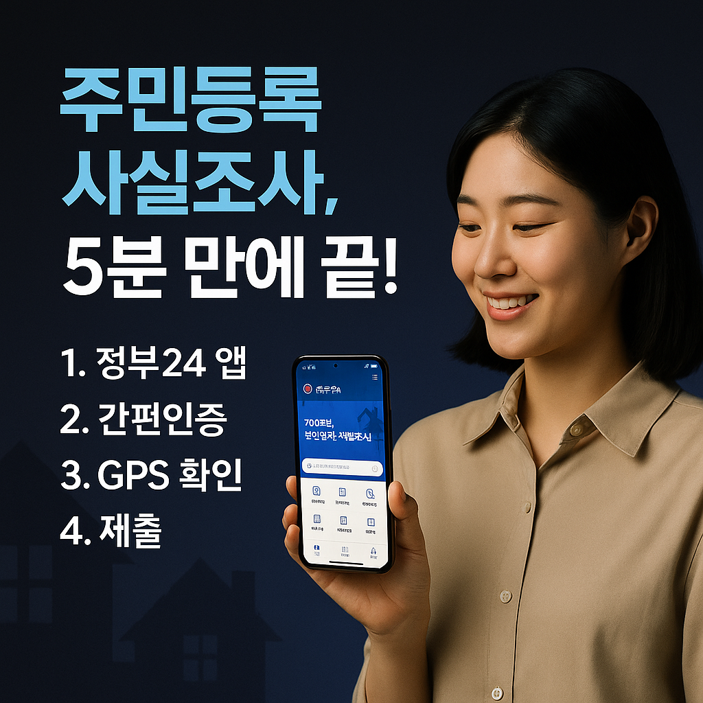 2025년 비대면 주민등록 사실조사 기간 및 참여 방법을 찾고 계신가요? 정부24 앱으로 5분 만에 끝내는 초간단 방법부터 GPS 오류 해결, 과태료 규정, 자주 묻는 질문까지 총정리했습니다.