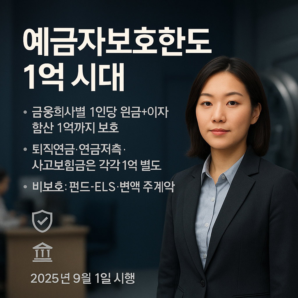 2025년 9월 1일부터 예금자보호한도가 5,000만원에서 1억원으로 올라갑니다. 이제 금융회사별로 1억원까지 안심하고 예금할 수 있는 시대가 열렸습니다. 과연 내 돈은 어떻게 보호되는지, 그리고 놓치면 안 될 중요한 정보들은 무엇인지 함께 알아보겠습니다.