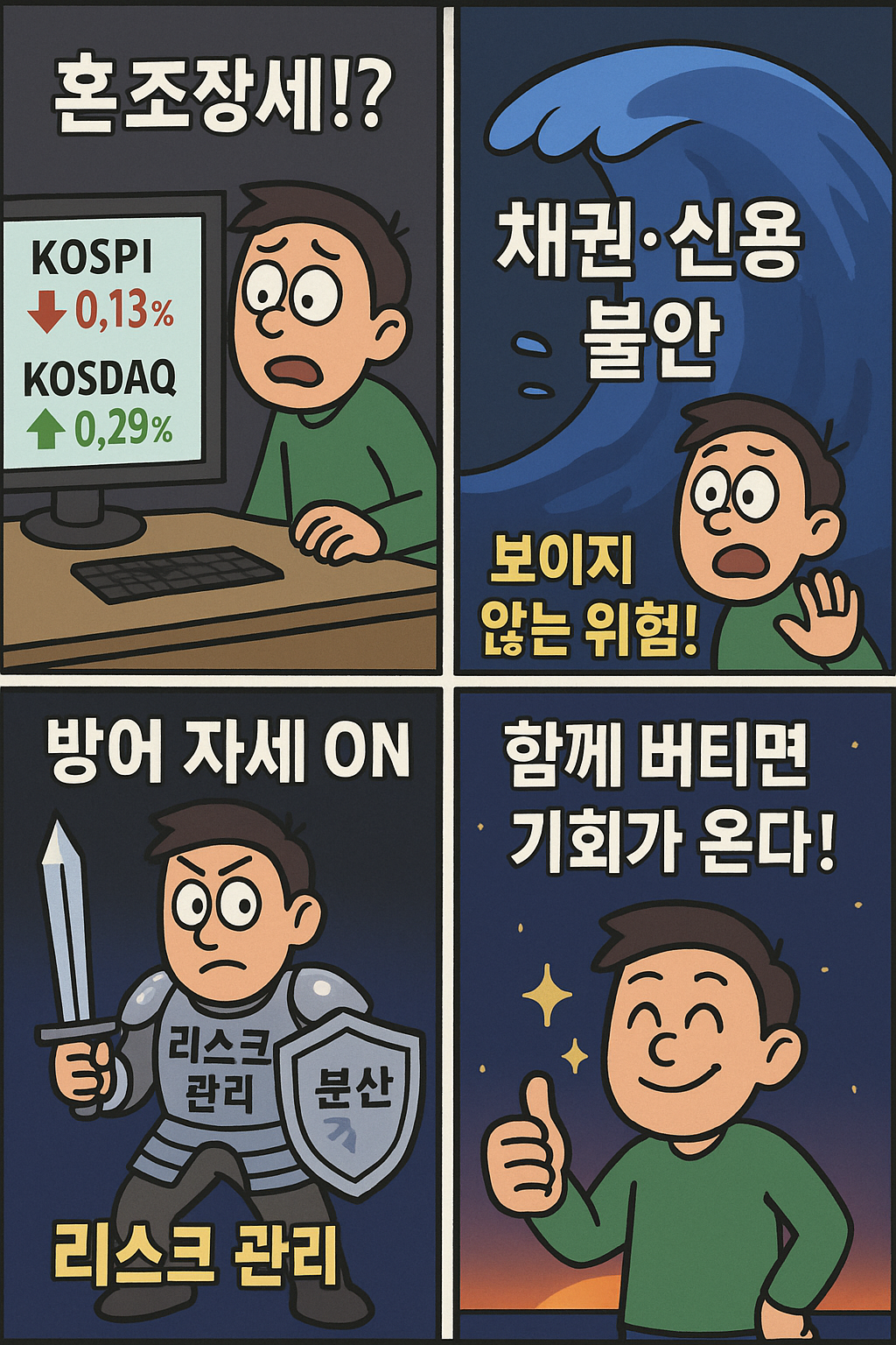 [오늘의 만화 브리핑] 혼조장세 속 숨겨진 리스크, 그래도 우리는 버틴다!