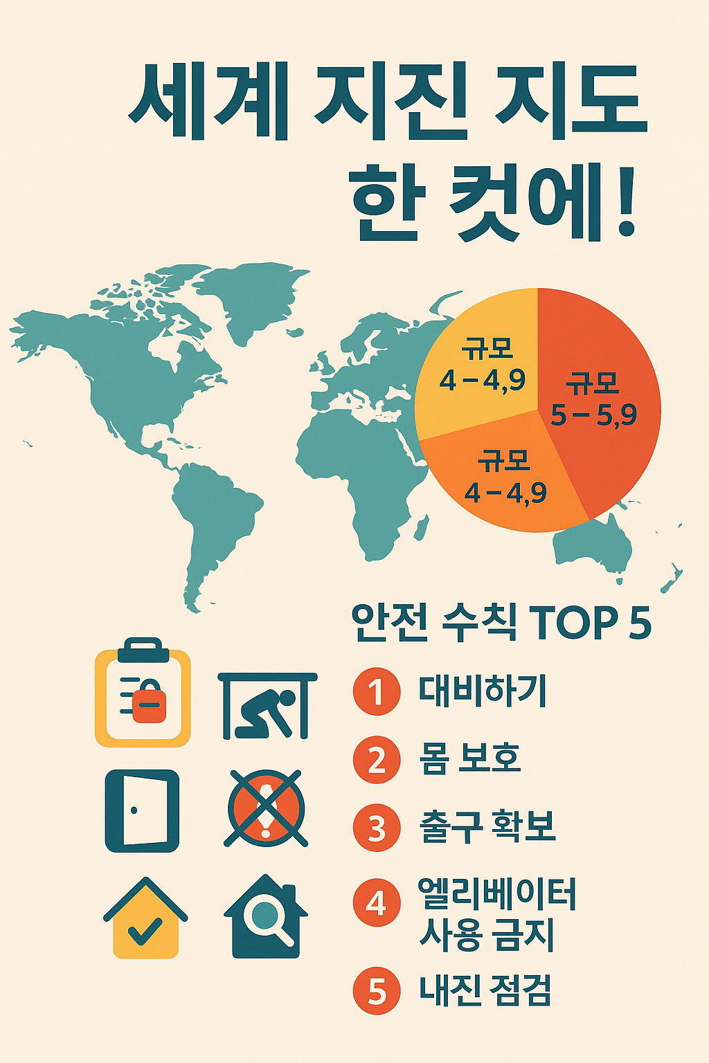갑자기 발밑의 땅이 흔들린다면, 여러분은 어떻게 하시겠나요? 최근 뉴스를 보면 세계 지진 발생 현황을 알리는 소식이 심심치 않게 등장합니다. 지구촌 곳곳에서 크고 작은 지진이 일어나고 있고, 그 피해도 상당한데요. 이제 지진은 지진대 위에 있는 나라들만의 문제가 아니라, 지진 대비 안전 수칙을 전 세계 누구나 알아두어야 할 만큼 중요한 이슈가 되었습니다. 이번 포스트에서는 최근 지진 발생 지역과 현황, 그리고 지진 대비 안전 수칙에 대해 알아보고자 합니다. 혹시나 모를 지진 재난에 대비해 우리의 안전을 지킬 수 있도록, 끝까지 함께 해주세요.