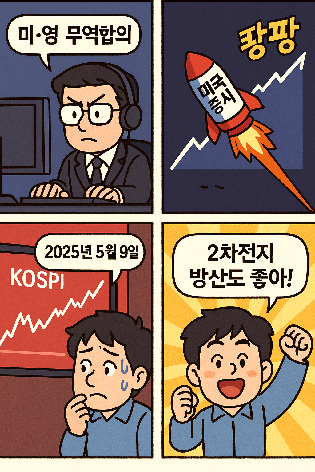 2025년 5월 10일 증시 4컷 만화 브리핑 | 무역협상·환율·반도체·2차전지 한눈에 보기 (3) | 2025.05.10 |