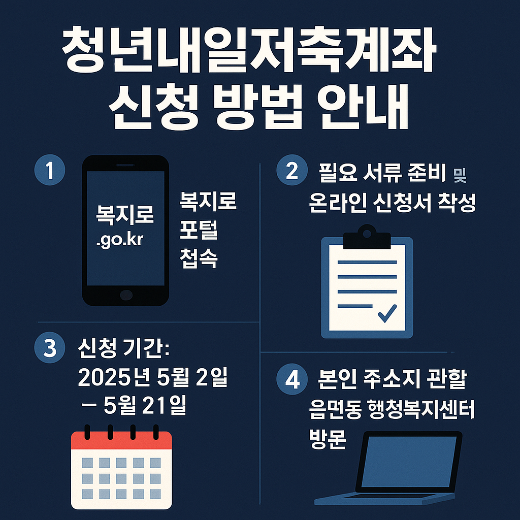 - 신청 기간: 2025년 5월 2일 ~ 5월 21일 (단, 행정복지센터 방문 시에는 16일까지 방문 권장)