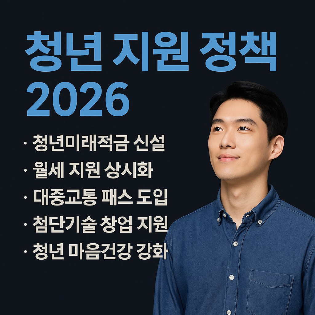 2026년 정부가 발표한 청년 지원 정책 2026의 핵심을 파헤칩니다. 청년미래적금, 월세 지원 상시화, 국민취업지원제도 인상 등 일자리와 청년 자산 형성, 마음 건강까지 생애 전반을 지원하는 특급 혜택을 지금 바로 확인하고 내 삶을 바꿔보세요.