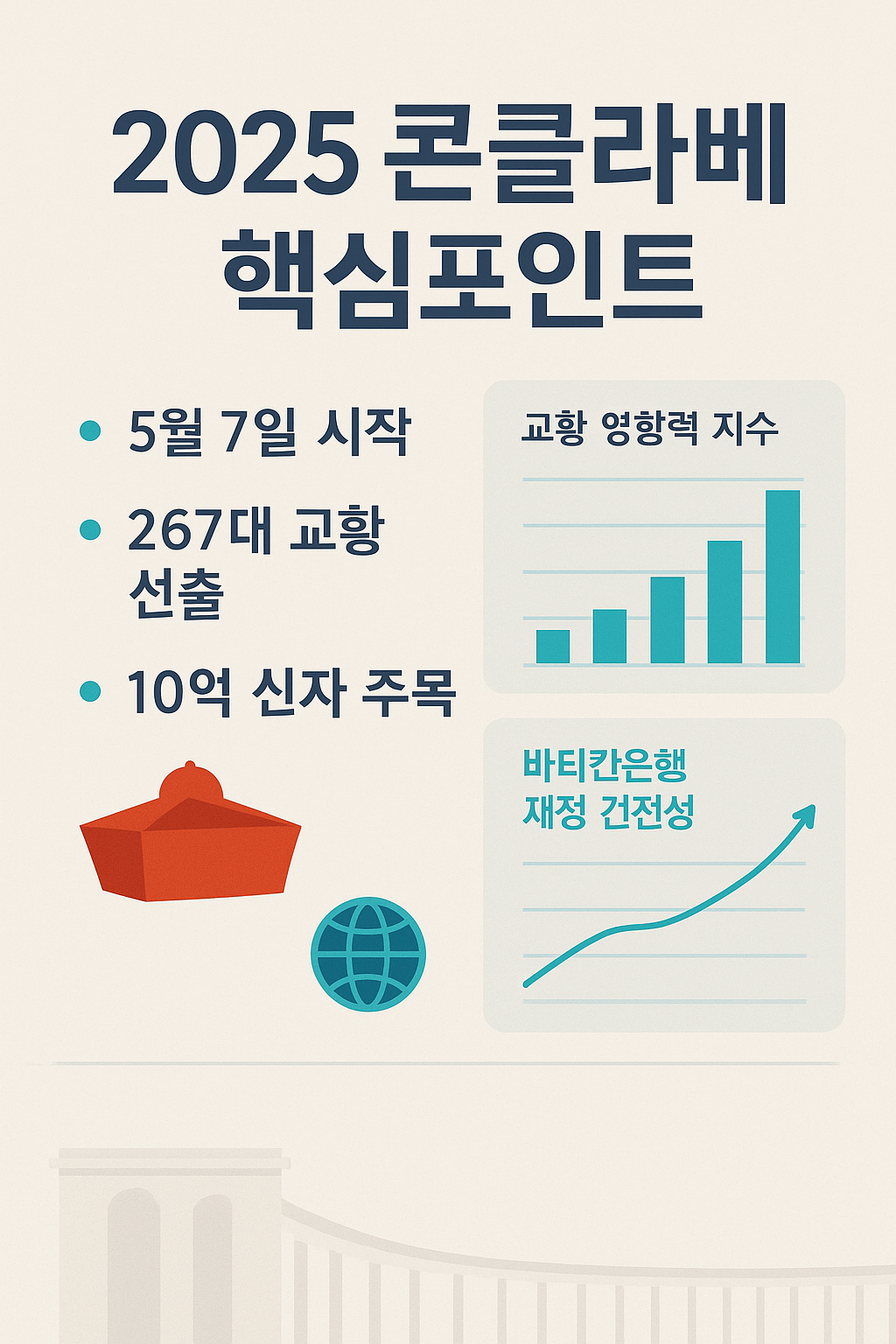 가톨릭 최대 행사이자 새로운 교황을 선출하는 콘클라베 일정이 공개되며 전 세계의 이목이 집중되고 있습니다. 특히 “과연 2025 교황 선출은 언제 시작될까?”라는 궁금증이 쏟아지면서, 교황청이 갖는 영향력과 그 주변 이야기에 대한 관심도 뜨겁습니다. 오늘 포스팅에서는 콘클라베가 진행되는 방식과 바티칸의 재정, 그리고 최근 재조명되고 있는 영화 후기를 함께 알아보겠습니다.