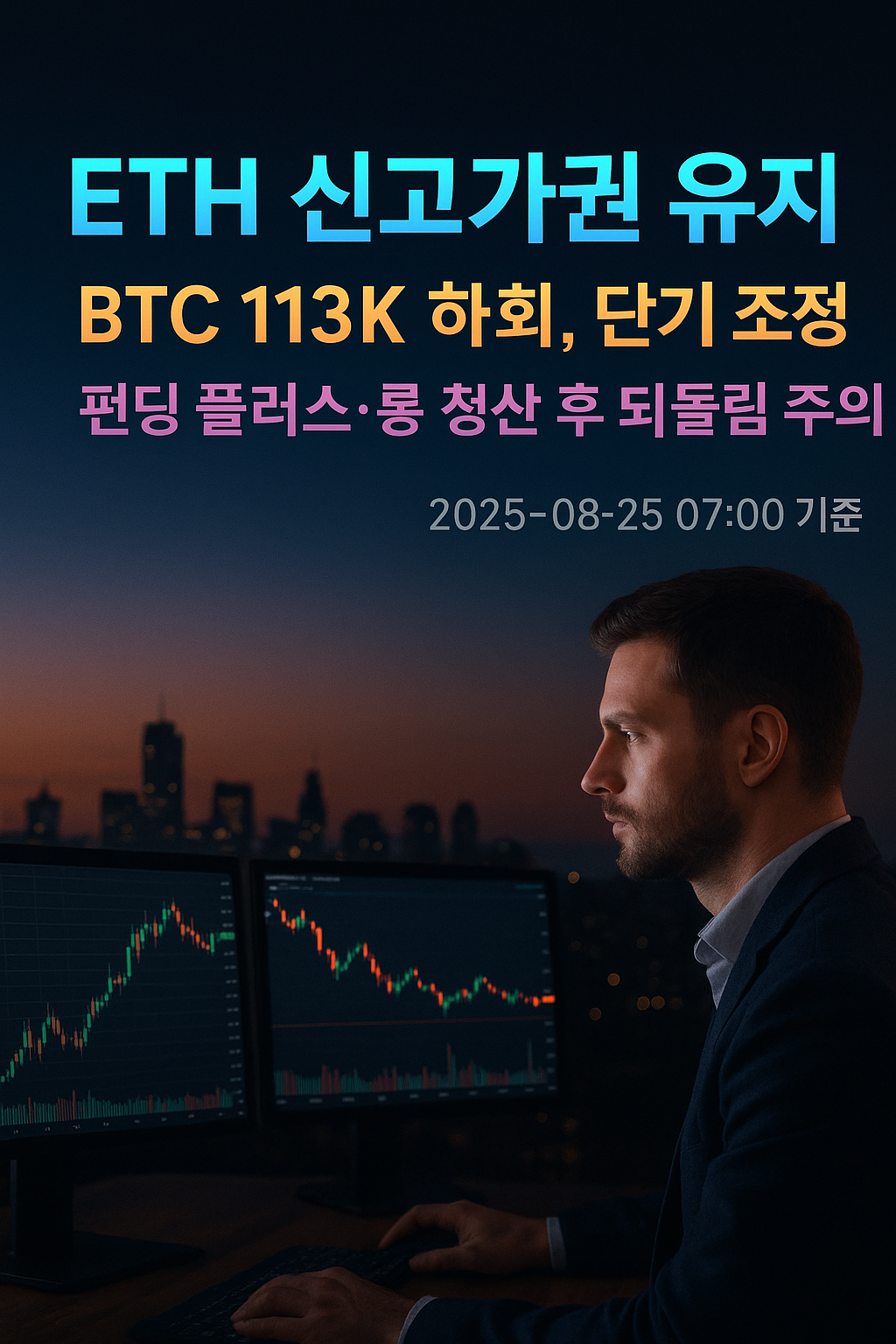 2025년 8월 25일 07:00 코인시장 데일리: ETH 사상 최고가, BTC 단기 조정…롱 청산과 펀딩비가 알려주는 다음 한 수