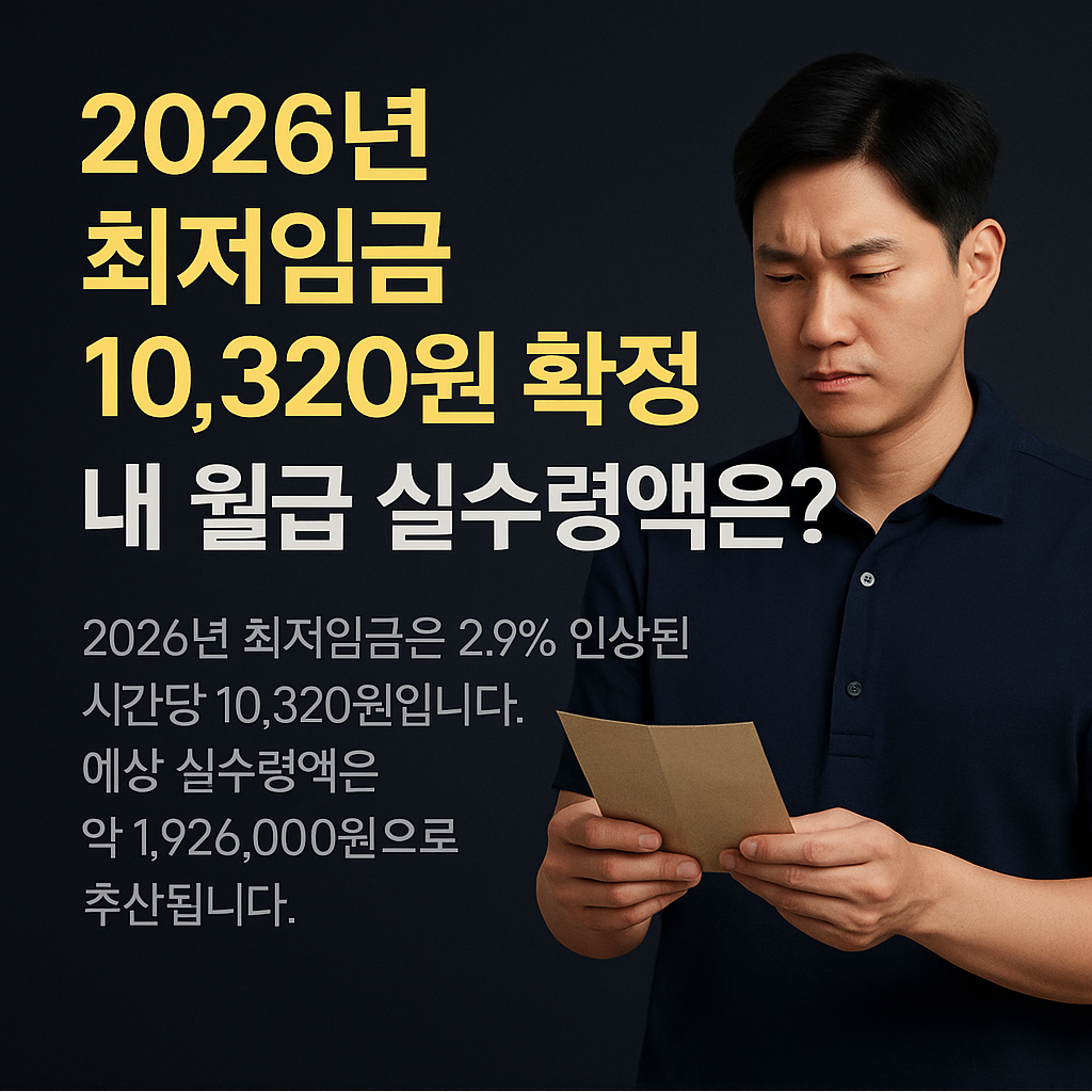2026년 최저임금이 시간당 10,320원으로 결정되었습니다. 17년 만의 노사공 합의 배경과 노동계·경영계의 엇갈린 반응, 그리고 내 최저월급 실수령액 계산법까지 모두 알려드립니다.